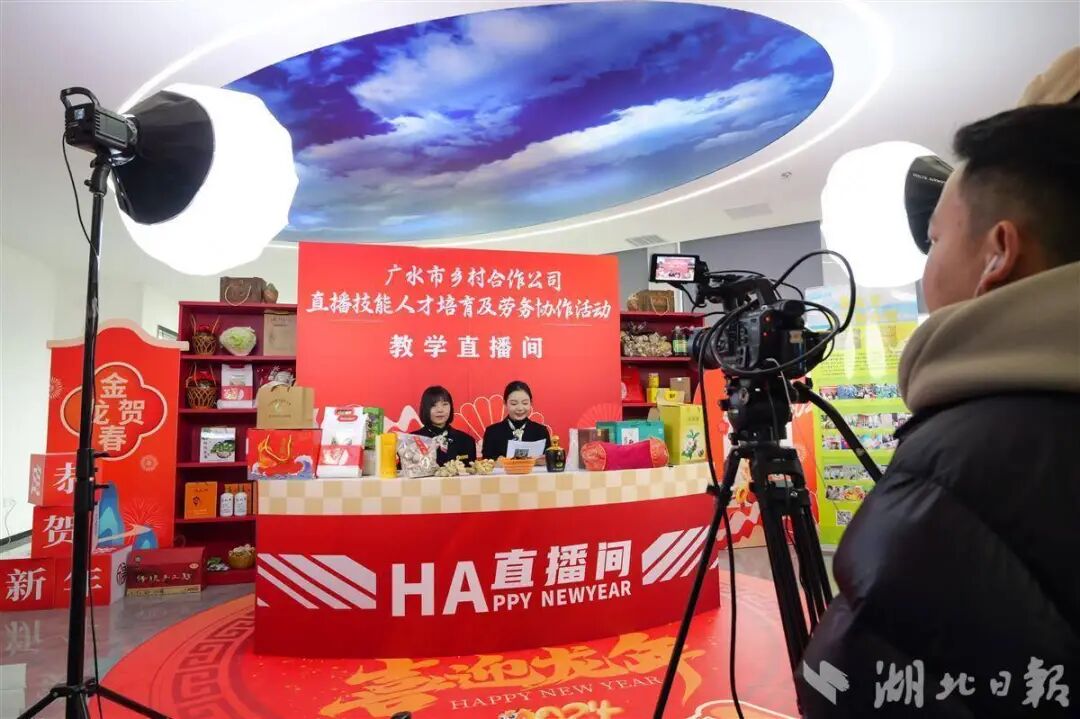 武汉临空港人力资源市场开起了教学直播间,向乡村主播传授直播技能